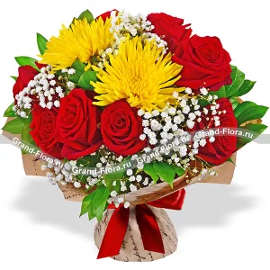 Свидание в Рио + шоколад - букет из хризантем,гербер и роз с шоколадом