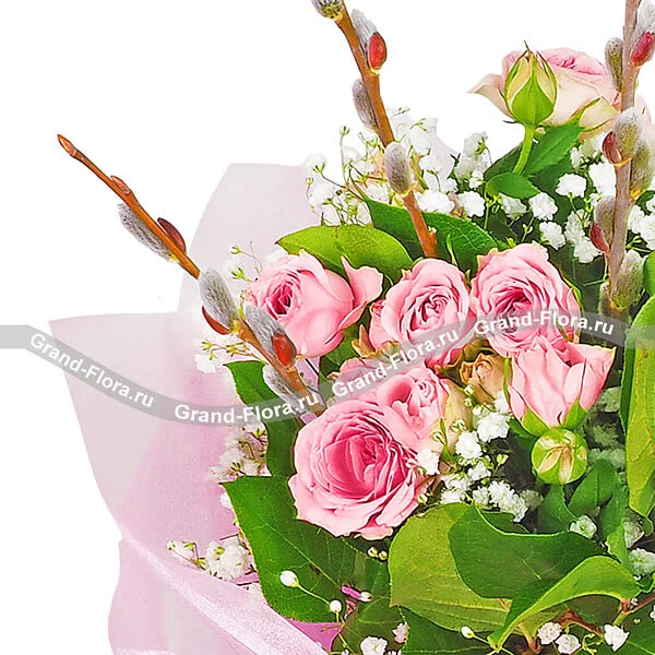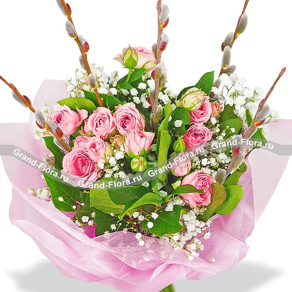 Вербное воскресенье - букет из кустовых роз