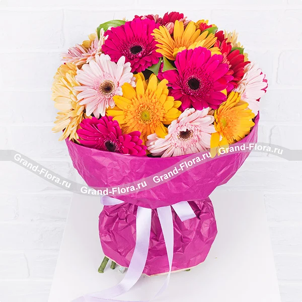 Искрящийся как летнее солнце, волнующий как первый поцелуй, излучающий тепло, как руки матери – этот букет не оставляет равнодушным. Внести разнообразие в серые, невзрачные будни